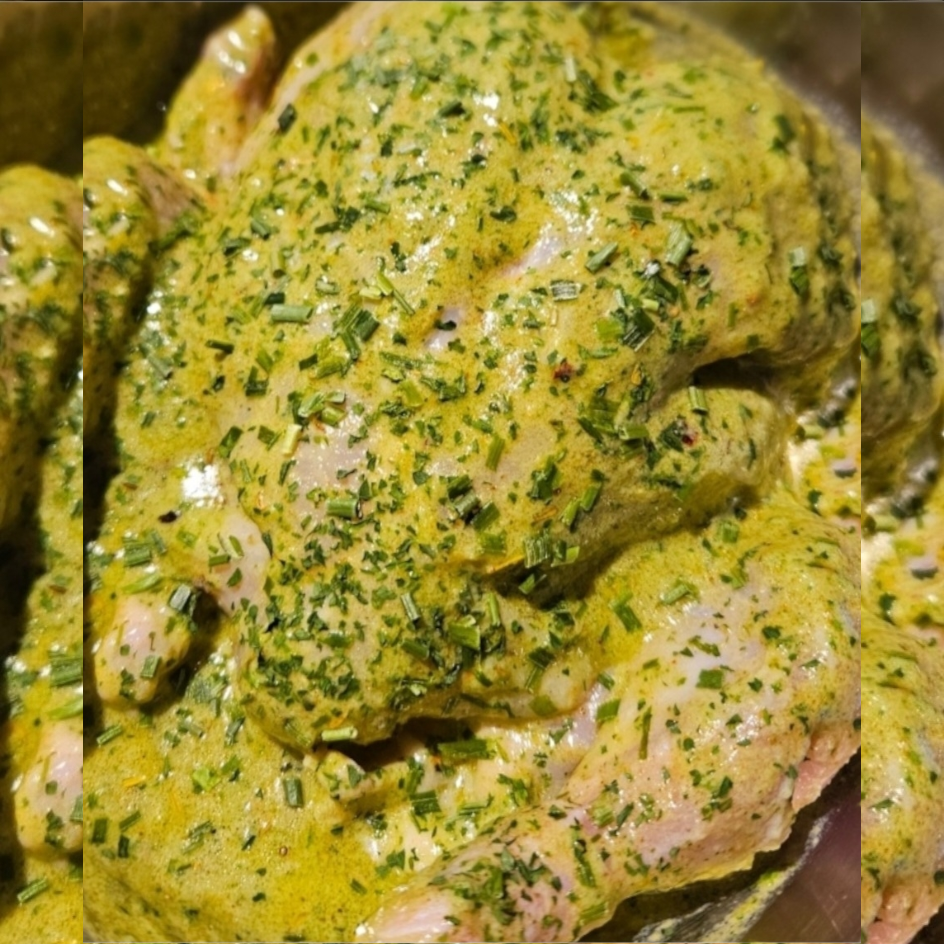 Enjoy the perfect blend of herbs and spices with our marinated whole chicken. Ready to cook, this tender, flavorful chicken is ideal for roasting or grilling, making it a delicious choice for any meal.
